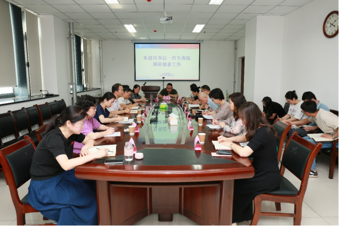 On the afternoon of May 22, Deputy Party Secretary Lü Jianrong and his delegation visited our school to investigate student employment work. Accompanying him were Du Yong, Director of the Student Affairs Department, and Ding Yingying, Executive Deputy Director of the Student Employment and Entrepreneurship Guidance Service Center. The school’s party and administrative leadership team, department heads, faculty representatives, and all counselors attended the discussion. The meeting was chaired by Wang Jun, the school’s Party Secretary.