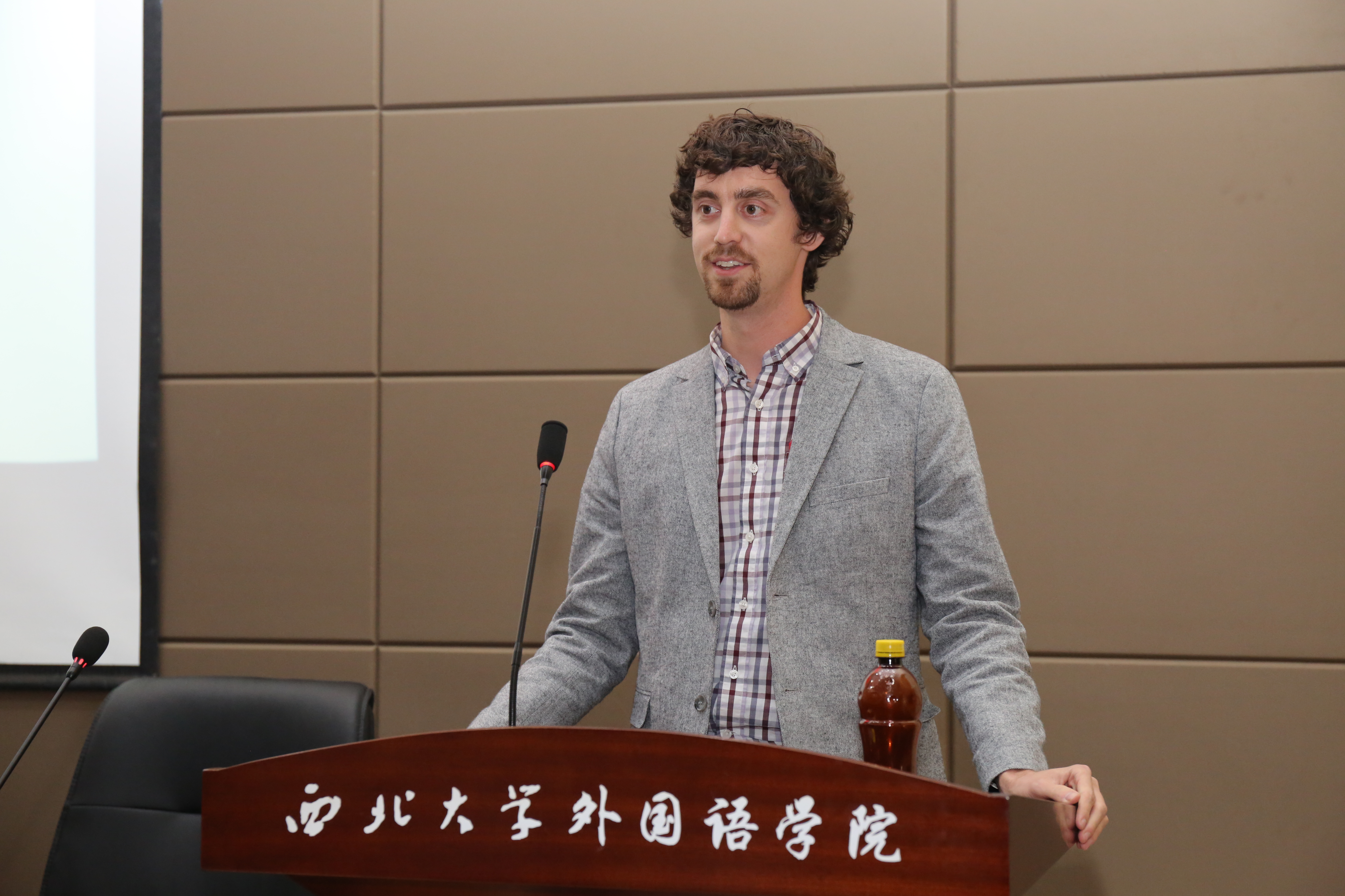 David Beal(大卫·比尔)从社会与文化角度出发,作了题为“美国的边境精神与遗产”的报告。他介绍了包括旧西方、路易斯安那州及太平洋沿岸等美国边境的情况,简述了以美国早期移民自由精神为代表的美国精神与遗产的广义范畴。此外,他也热情地分享了自己在中国的生活,并表示中美民间文化的不断交流是中美关系向前迈进的不竭动力。