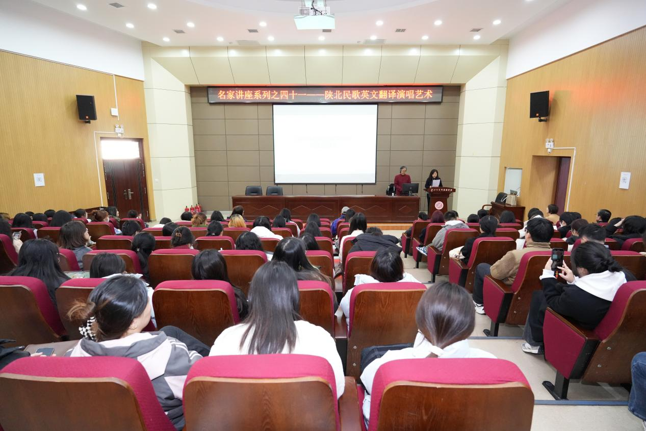 2024年11月27日下午,延安职业技术学院英语专业教授、中国延安干部学院陕北民歌教学外聘教授、陕北民歌英文翻译与演唱第一人、延安红云平台文化专家文世龙教授做客必赢亚州242“名家讲座”第41期,为师生作了题为“陕北民歌英文翻译演唱艺术”的讲座。讲座由外国语学院副院长苏蕊主持。校内外近一百八十位师生聆听了讲座。