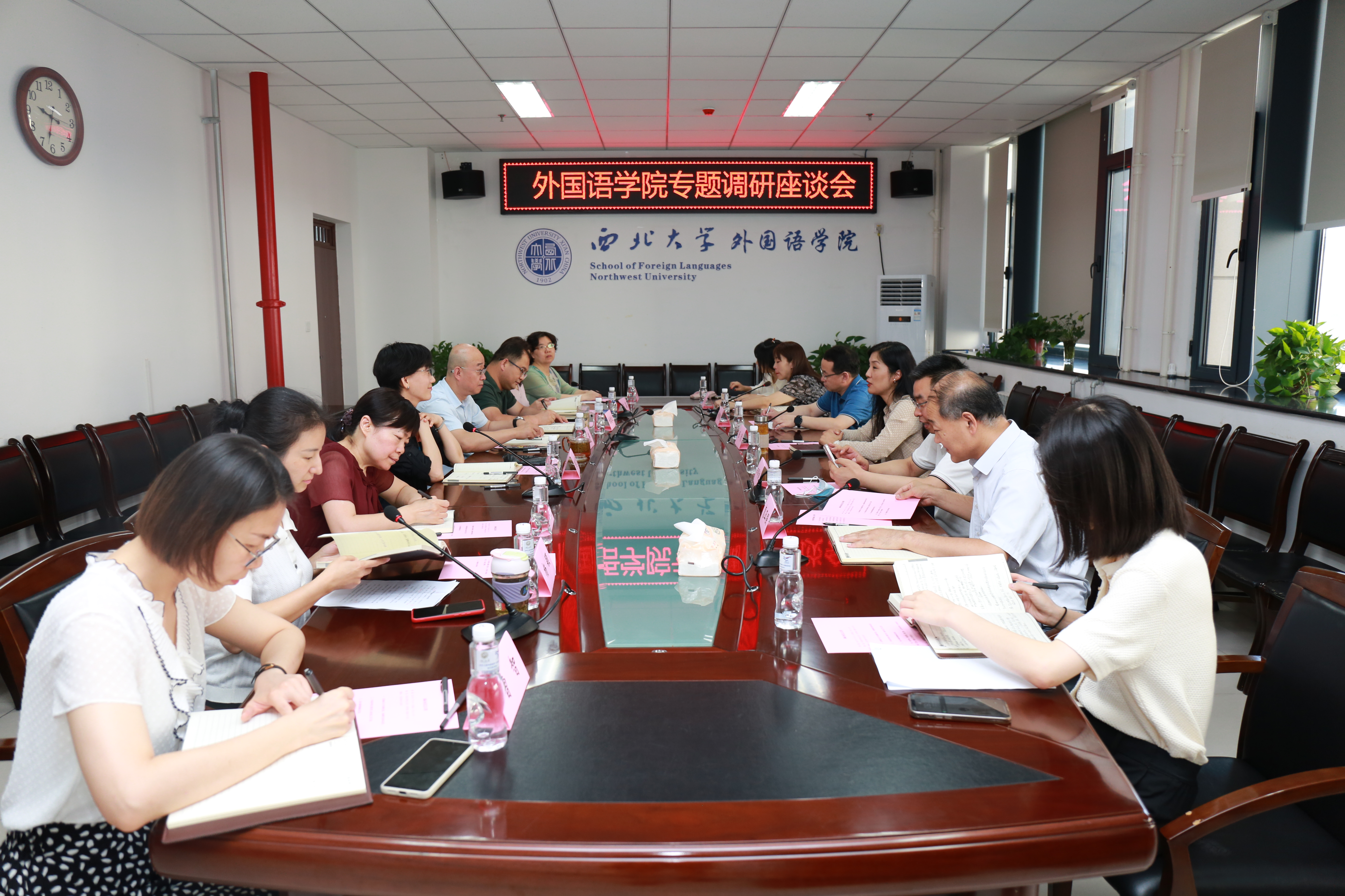 7月8上午,校党委副书记张清,校党委常委、宣传部部长田明纲,统战部部长董国强,教师工作部部长惠正强,高层次人才项目办公室主任张现,党(校)办干部等一行来外国语学院开展专题工作调研,学院班子全体成员工会主席、团委书记参加了此次调研座谈会。