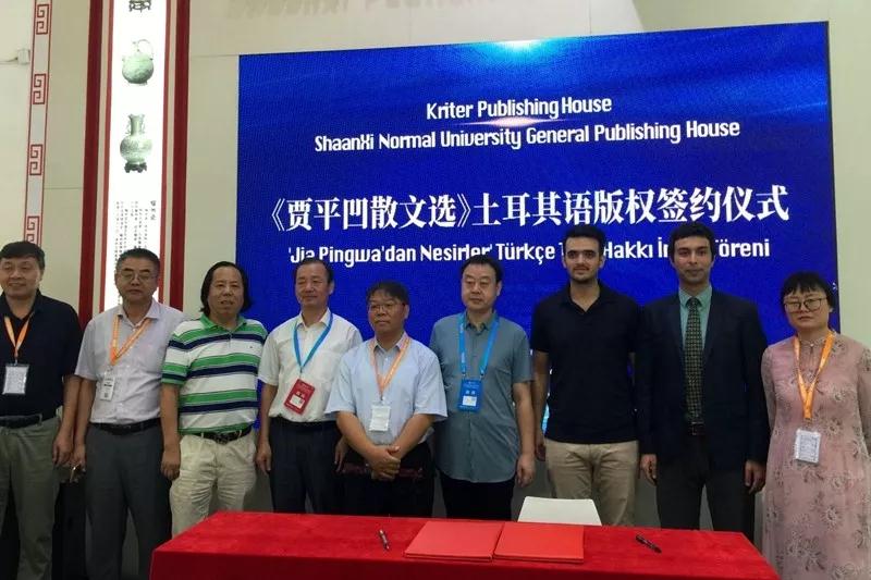 821日上午,第26届北京国际图书博览会开展伊始,总社与土耳其Kriter出版社在展会现场举行《贾平凹散文选(汉英对照版)》土耳其语版权签约仪式。陕西省委宣传部厅级领导沙庆超,陕西省委宣传部出版处处长高彦平,陕西省委宣传部版权管理处调研员王新民,陕西省翻译协会会长、西北大学外语学院院长胡宗锋,土耳其Kriter出版社代表、北京世园会土耳其馆馆长Muhammet,陕西省翻译协会海外理事、必赢亚州242“中土(土耳其)文化交流中心”主任、《贾平凹散文选》土耳其语翻译者艾哈迈德·艾克雷姆·德米尔卡勒,总社副社长屈瑞新等出席了签约仪式。总社大众文化出版中心主任郭永新及相关编辑参加了活动。活动由郭永新主持。